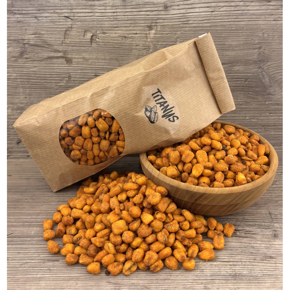 TITANUS pražená kukuřice s chilli je lehčí a křupavější alternativou k tradičním ořechům. Její výrazná chuť a příjemná pálivost z ní dělají perfektní pochoutku k pivu, vínu nebo prostě když máš chuť na něco pikantního a výjimečného.