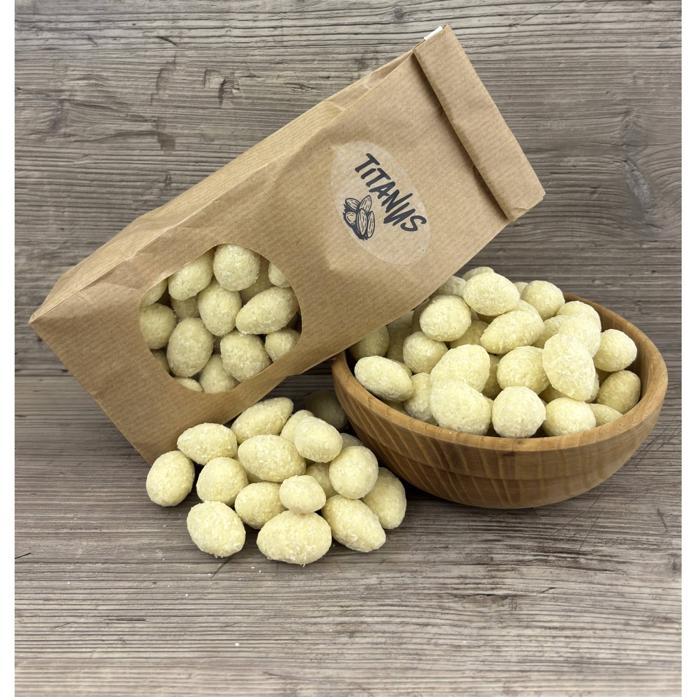 TITANUS mandle v bílé čokoládě s kokosem jsou luxusní pochoutka a dokonalou volbou pro všechny milovníky bílé čokolády a kokosu.