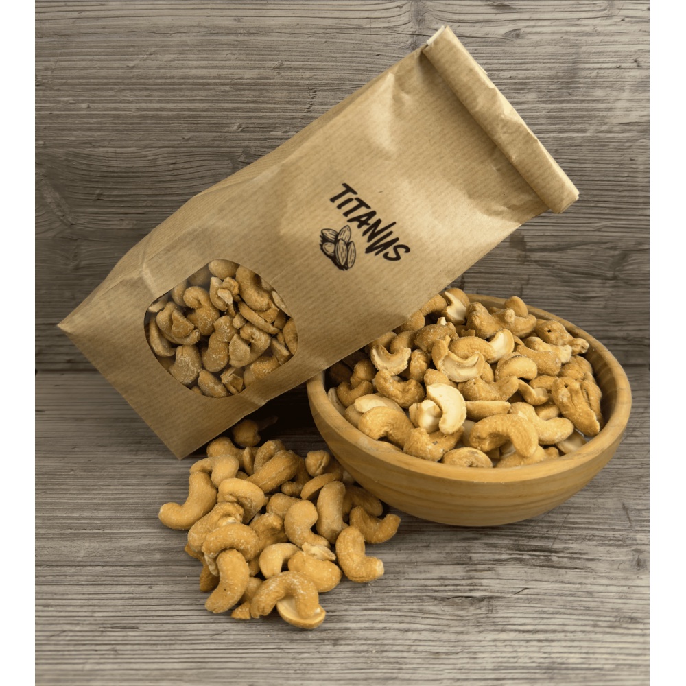 TITANUS Kešu pražené solené jsou dokonalou volbou pro každou příležitost — ke svačině, k pivu, vínu, jako party...
