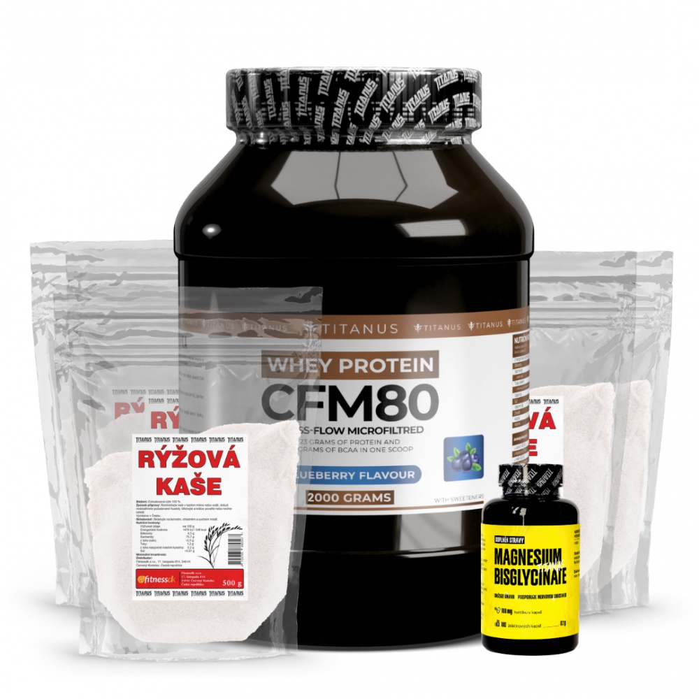 Nabij své výkony prémiovým Titanus mixem CFM proteinu, 5ks rýžové kaše a magnesia pro maximální sílu a regeneraci.