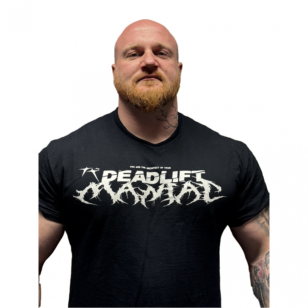 Ve spolupráci s Honzou Jirušem vám přinášíme jeho signifikantní tričko DEADLIFT MANIAC! Pro všechny maniaky, kteří to s posilovnou myslí vážně!