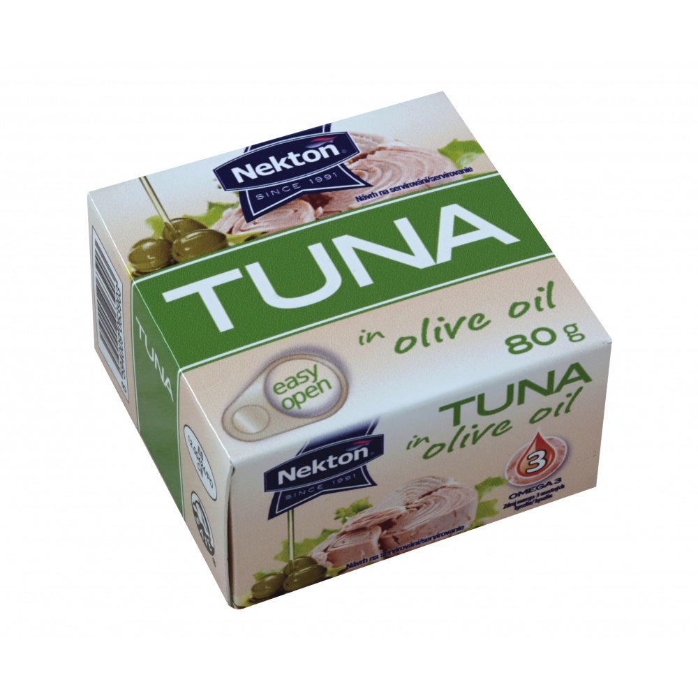 Tuňák v olivovém oleji ve sterilované konzervě od Nektonu — 80 g.